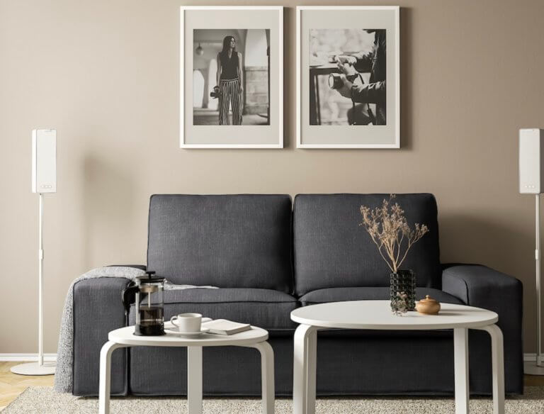 Der SYMFONISK-Regallautsprecher zum Preis von 99,00€ ist nicht nur günstig, sondern dank AirPlay 2 auch äußerst beliebt und der günstigste Einstieg in das System von Sonos. Deshalb dürfte dieser in nicht wenigen Wohnzimmern auch als rückwärtiger Lautsprecher für das Heimkino aufgestellt sein. Mit dem neuen Bodenstativ, wahlweise in Schwarz oder Weiß erhältlich, trägt das schwedische Möbelhaus dem Ganzen Rechnung.