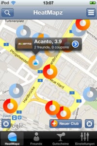 Dank der App. erhälts du Gutscheine für Drinks und gratis Eintritte in diverse Clubs und Bars und kannst diese auch verschenken oder mit Freunden tauschen. Wichtig ist nur das du HeatMapz mit Facebook verknüpfst, damit die Anwendung auf deine Freundesliste zugreifen kann. Zudem hast du dann die Möglichkeit zu sehen, wo deine Freunde abfeiern und kannst durch die Funktion „live Hotness“-Anzeige sehen wie gut die Stimmung ist, welche Musik gespielt wird und wie lang die Warteschlange vor dem Club ist und es werden Bilder in der App gepostet, damit du direkt sehen kannst, wie die Party vor Ort abgeht.