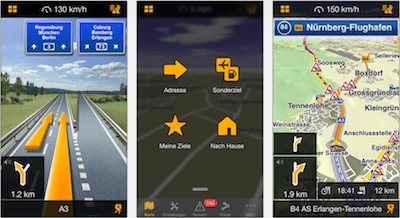 Navigon ist die wohl bekannteste Alternative. In der „Navigon Europe“ Version sind alle Länder aus Europa inkludiert. Ab Werk schlägt die iPhone App mit vielen Funktionen, wie Sprachansage, intelligenter Adresseingabe, Tag/Nach-Modus und Fahrspurassistent auf. Weiter Features, wie Panorama View oder sogar Luve-Traffic können per In-App Kauf hinzugekauft werden und machen das iPhone so zu einem vollwertigen Navigationsgerät. Das Ganze funktioniert natürlich auf im Querformat.