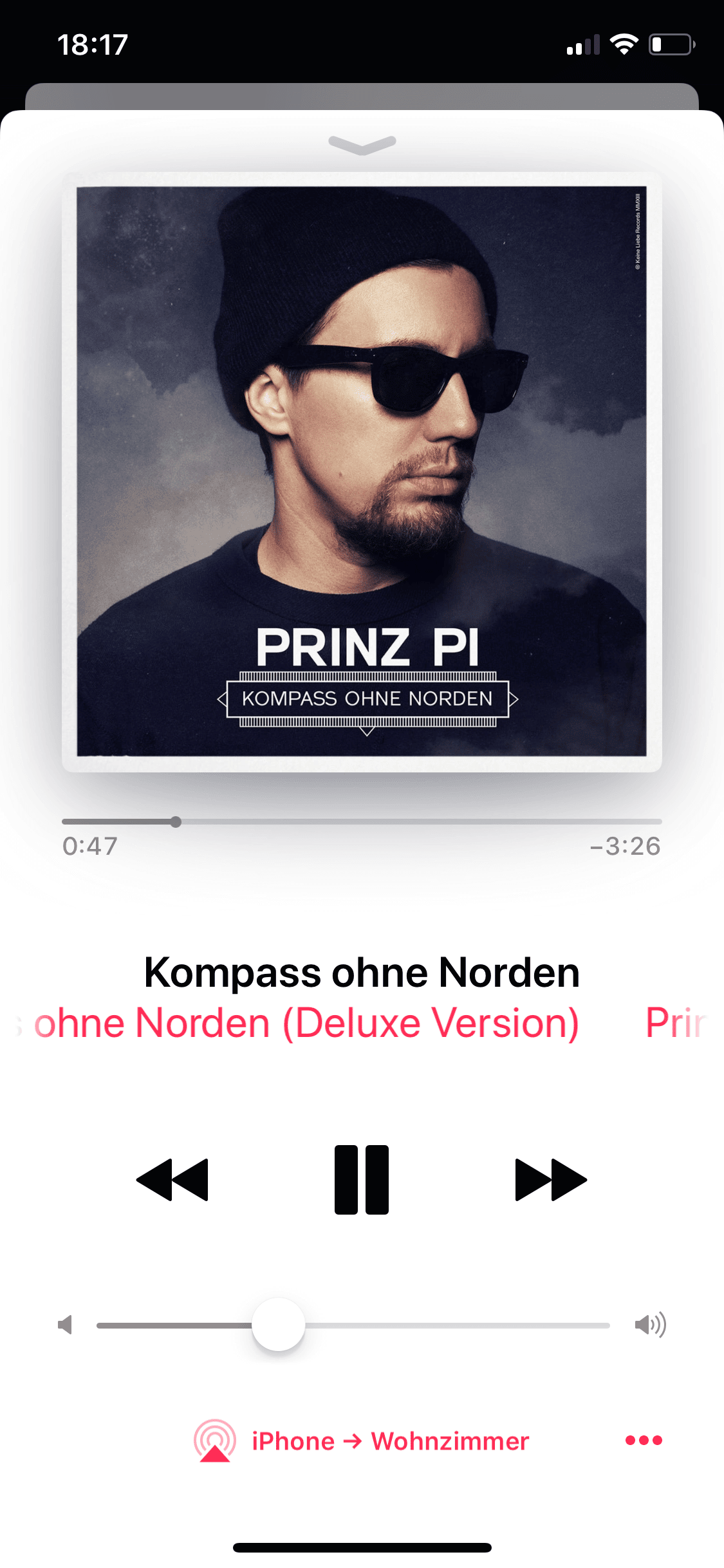 Genug des Lobes, denn das endet, wenn man nicht mit iOS oder Siri arbeiten möchte. Der HomePod soll schließlich auch als kabelloser Lautsprecher arbeiten. Tut er. Problemlos? Nun. Der erste Verbindungsversuch ist mit einer Fehlermeldung gescheitert. Der zweite hat funktioniert. Sound ist toll, der Lag der Übertragung bei Videos wird genau wie bei Beats-Kopfhörern ausgeglichen, ist aber wesentlich größer. Nicht eine halbe Sekunde, sondern ca. 3 Sekunden vergehen vom Klick auf Play bis zum Ton aus dem Lautsprecher. Ähnlich lange dauert es, wollte man die Wiedergabe stoppen.
