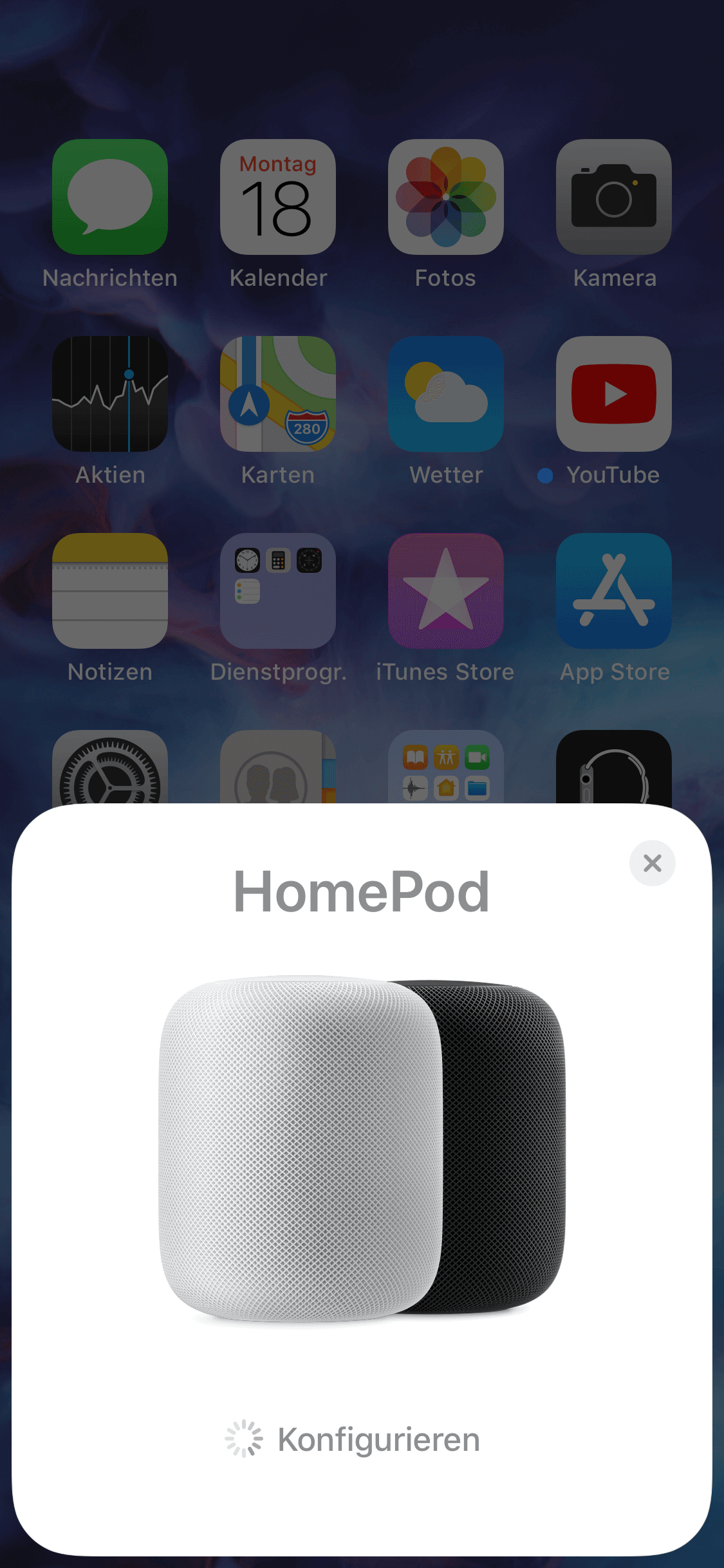 Zweifelsfrei habt ihr bereits das eine oder andere Video gesehen, wie der HomePod eingerichtet wird. Es ist jedenfalls sehr einfach: Stecker in die Steckdose, kurz warten, iPhone in die Nähe bringen und dann den Anweisungen auf dem Bildschirm folgen. Wer schon einen Kopfhörer mit W1-Chip hat, wird sich gleich wie zu Hause fühlen, die Einrichtung funktioniert nämlich ganz genauso. Am Ende der Einrichtung steht eine kurze Einweisung – Siri stellt sich vor und möchte kurz zurückgegrüßt werden. Sie sagt, dass sie allerlei Dinge könne, man solle es doch direkt mal ausprobieren: Hey Siri, spiele Musik. Und schon geht es los. Was Siri verschweigt: Die Zwangsmusik ist ebenfalls Teil des Setup-Prozesses. Denn mit der Musik, die abgespielt wird, wird gleichzeitig der Raum vermessen.