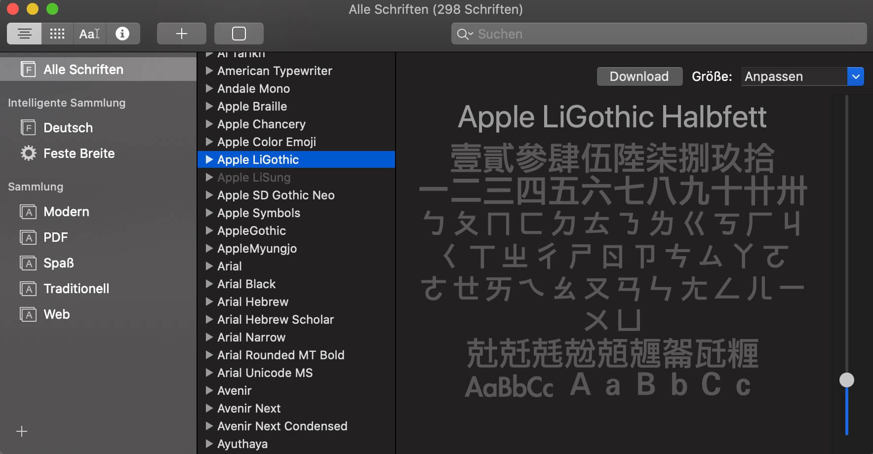 Darüber hinaus bietet Apple in einem separaten Support-Dokument einen vollständigen Überblick aller lizenzierten Schriften an. Selbstverständlich lassen sich auf Wunsch auch andere, kostenpflichtige Fonts herunterladen, um seinem Mac einen individuellen Look zu verleihen.