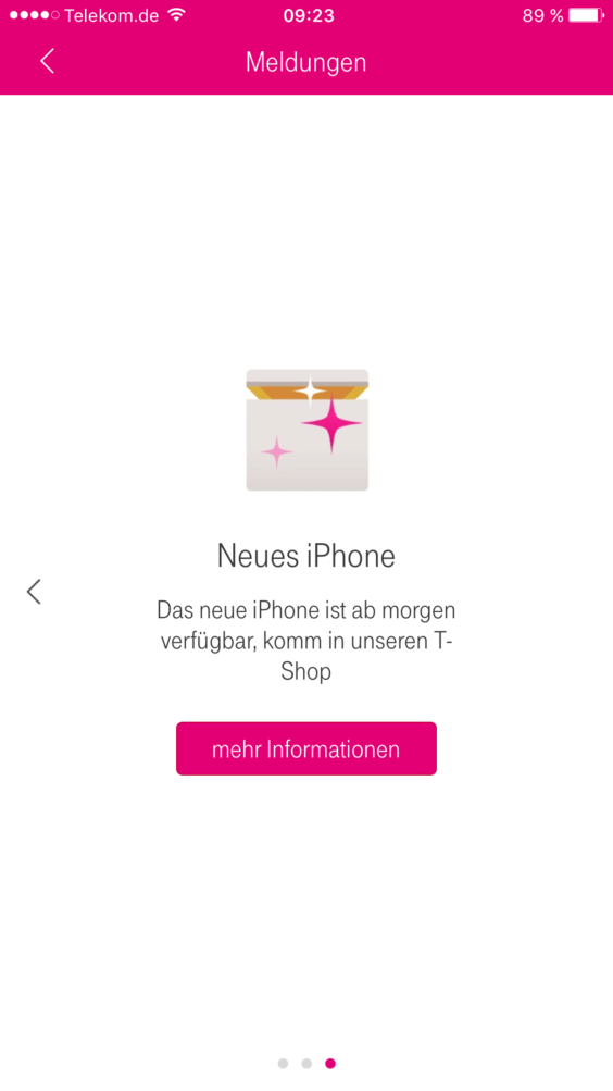 Viele konnten heute morgen ihren Augen nicht trauen, nachdem sie die Telekom MagentaService-App geupdated haben. Im Bereich der Meldungen hat der Provider nach dem App-Update nämlich angekündigt, ab morgen das neue iPhone verkaufen zu wollen. „Das neue iPhone ist ab morgen verfügbar, komm in unseren T-Shop“ steht da. Wer auf den Button für weitere Infos klickt wird allerdings auf eine Fehlerseite der Telekom geleitet. Sicherlich hat die Technik bei dem Update der Kundenservice-App einen großen Fehler gemacht, immerhin war die Meldung sogar mehrere Stunden hinweg sichtbar. Erst kurz vor Veröffentlichung des Coffee Break wurde die Meldung entfernt. Das iPhone 8 wird morgen sicherlich nicht bei der Telekom zu ergattern sein, aber möglicherweise wurde die Meldung einen Monat zu früh eingestellt? Der 22. September als Verkaufsstart des iPhone 8, ein Freitag, würde jedenfalls passen. Vielen Dank für eure E-Mails.