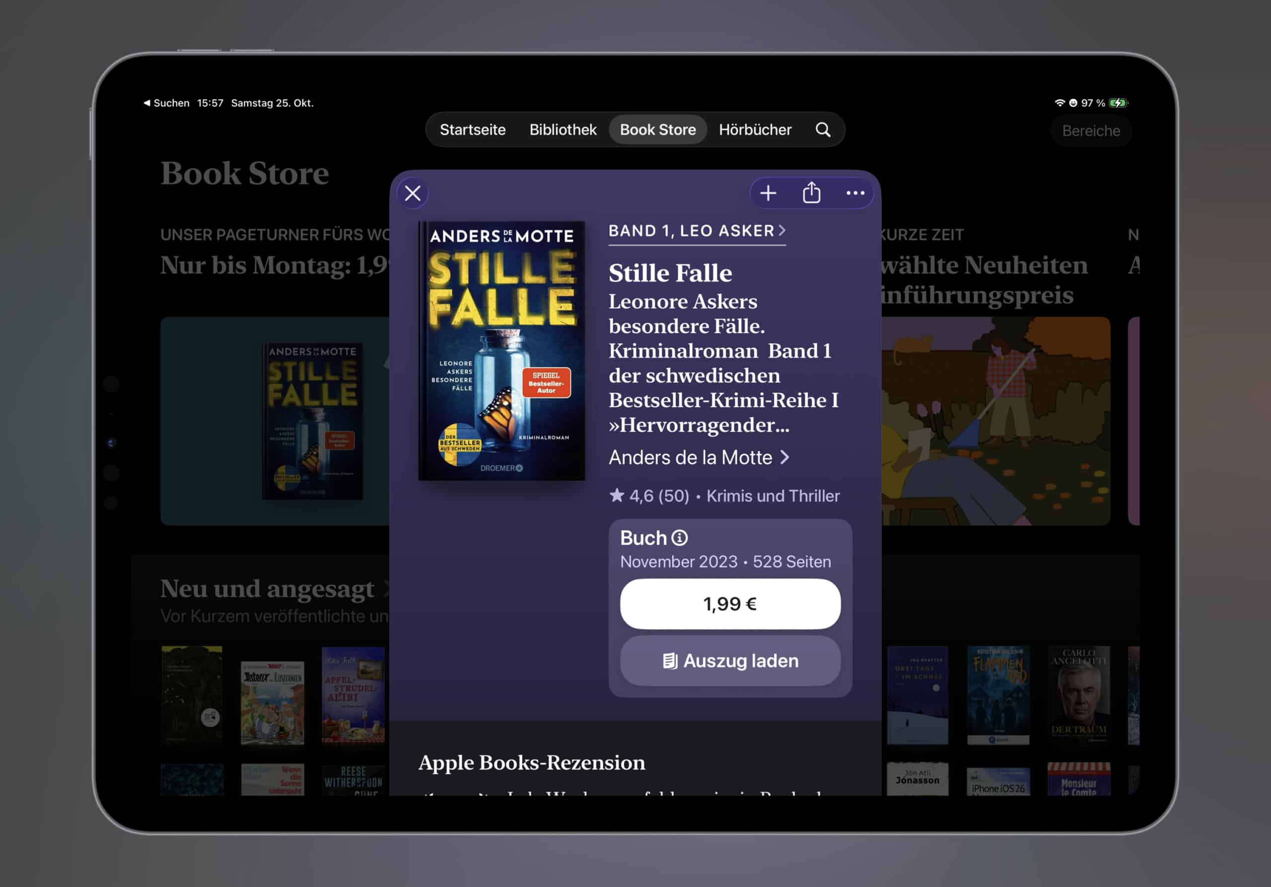 Der Herbst ist da, kommende Woche ist sogar schon Halloween: Es wird also nun recht früh dunkel, und wer statt Netflix und Co. lieber ein Buch lesen möchte, sollte sich das neue Angebot von Apple anschauen. Für dieses Wochenende hat sich Cupertino für einen skandinavischen Thriller entschieden.