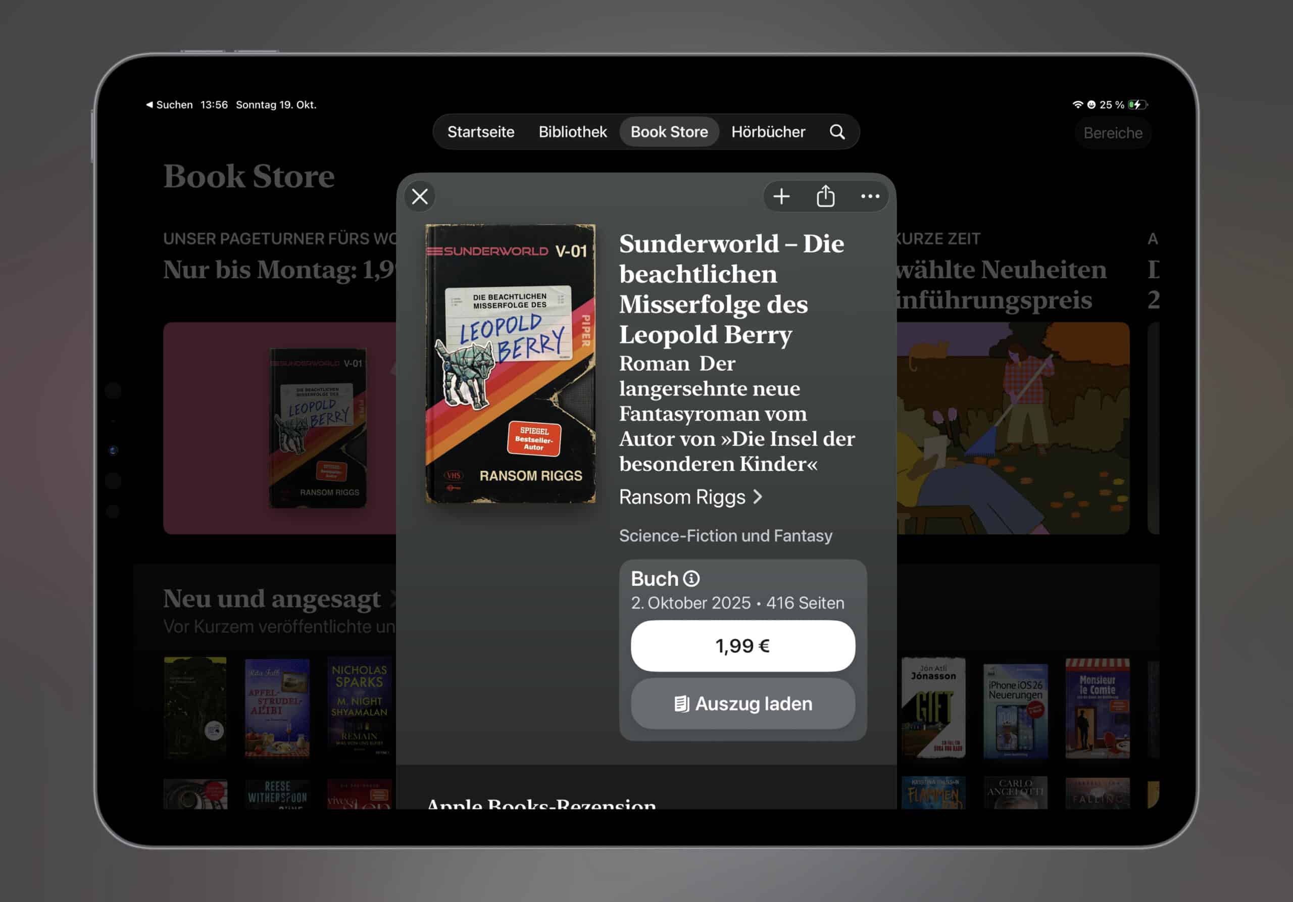 Als Pageturner gibt es dieses E-Book dieses Wochenende zu einem Sonderpreis von 1,99 € zu erwerben. Nach dem Kauf kann der Pageturner in der Bücher-App von Apple geräteübergreifend gelesen werden, eine automatische Synchronisation ist ebenfalls mit an Bord. Die hilft euch, bei der zuletzt gelesenen Stelle auf einem anderen Gerät weiterzulesen. Wir wünschen viel Vergnügen mit dem Lesestoff.