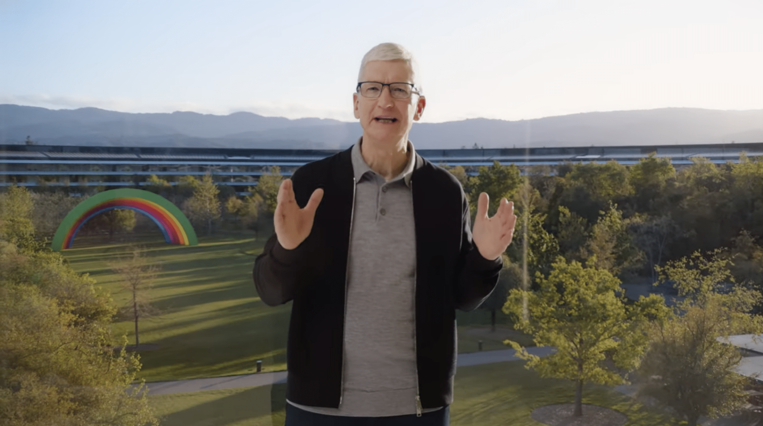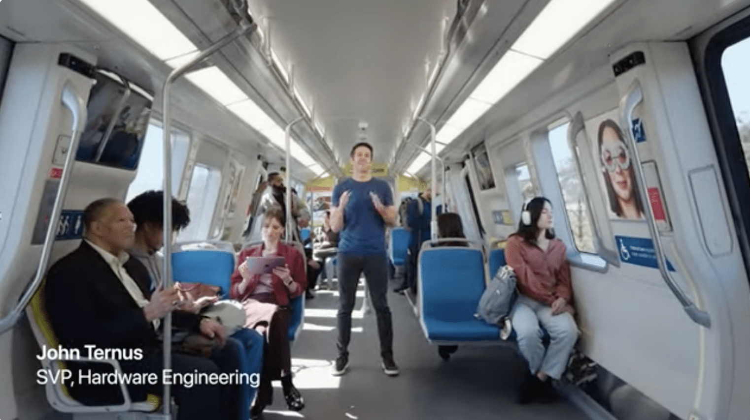 Nach einem eindrucksvollen Wechsel von Wasserfarben zur Realität und einem riskanten Flug über ein riesiges Gebäude steht ein einsamer Tim Cook auf dem Flur und feiert sich selbst. Wie ältere Männer es gerne tun, blickt er zurück auf seine früheren Erfolge. Er zeigt eine komische riesige Brille, die Autos auf Knopfdruck die Farbe wechseln lassen und Dr. Tommy Korn bei Operationen helfen (Danke Nein! Ich möchte keinen Chirurgen mit dieser Brille am OP-Tisch sehen). Der Regisseur Jon M. Chu sitzt im Wohnzimmer, statt seinen Film zu drehen, ist aber doch angeblich mittendrin. Dann fliegen noch MacBooks herein und der ältere Herr feiert auch sie. Er feiert auch iPads, die er handgeschmiedet hat (siehe Minute 11). Die Kamera fliegt aus dem Apple Park heraus über eine Wiese direkt in einen Zug.