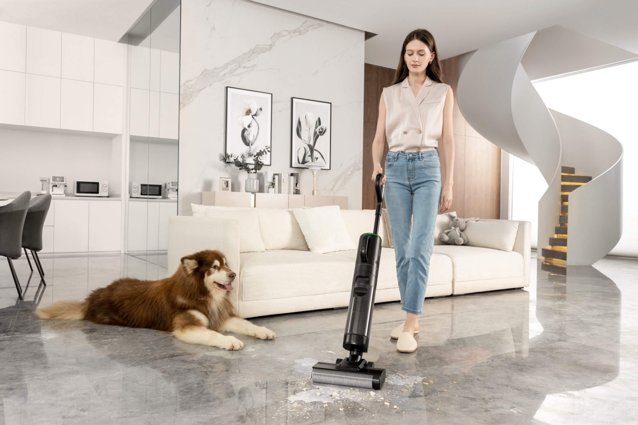 Habt ihr Mitbewohner mit beispielsweise langem Haar oder viel Fell, werdet ihr euch über die Möglichkeit freuen, unter verschiedenen Reinigungsmodi wählen zu können. Man hat die Wahl zwischen dem Auto- oder dem Saugmodus beim Nass-/Trockensauger, der mit einem fortschrittlichen Wasserzirkulationssystem ausgestattet ist. Beim Handstaubsauger steht ein Standard- sowie ein Turbomodus zur Verfügung. Die Funktion der „Dirt-Detection“ zeigt an, wie viel Staub oder sonstigen Schmutz man gerade aufsaugt. Außerdem kann der Sauger per Sprachansagen kommunizieren und euch beispielsweise auf den Batteriestatus hinweisen. Durch eine hohe Rotationsgeschwindigkeit der weichen Walzenbürste rückt man auch hartnäckigen Rückständen zu Leibe. Für eine schonende Reinigung von Kanten oder Raumecken liegt die Walze einseitig frei. Ein gezackter Bürstenkamm hält die Walze stets sauber und befreit sie von Haaren.