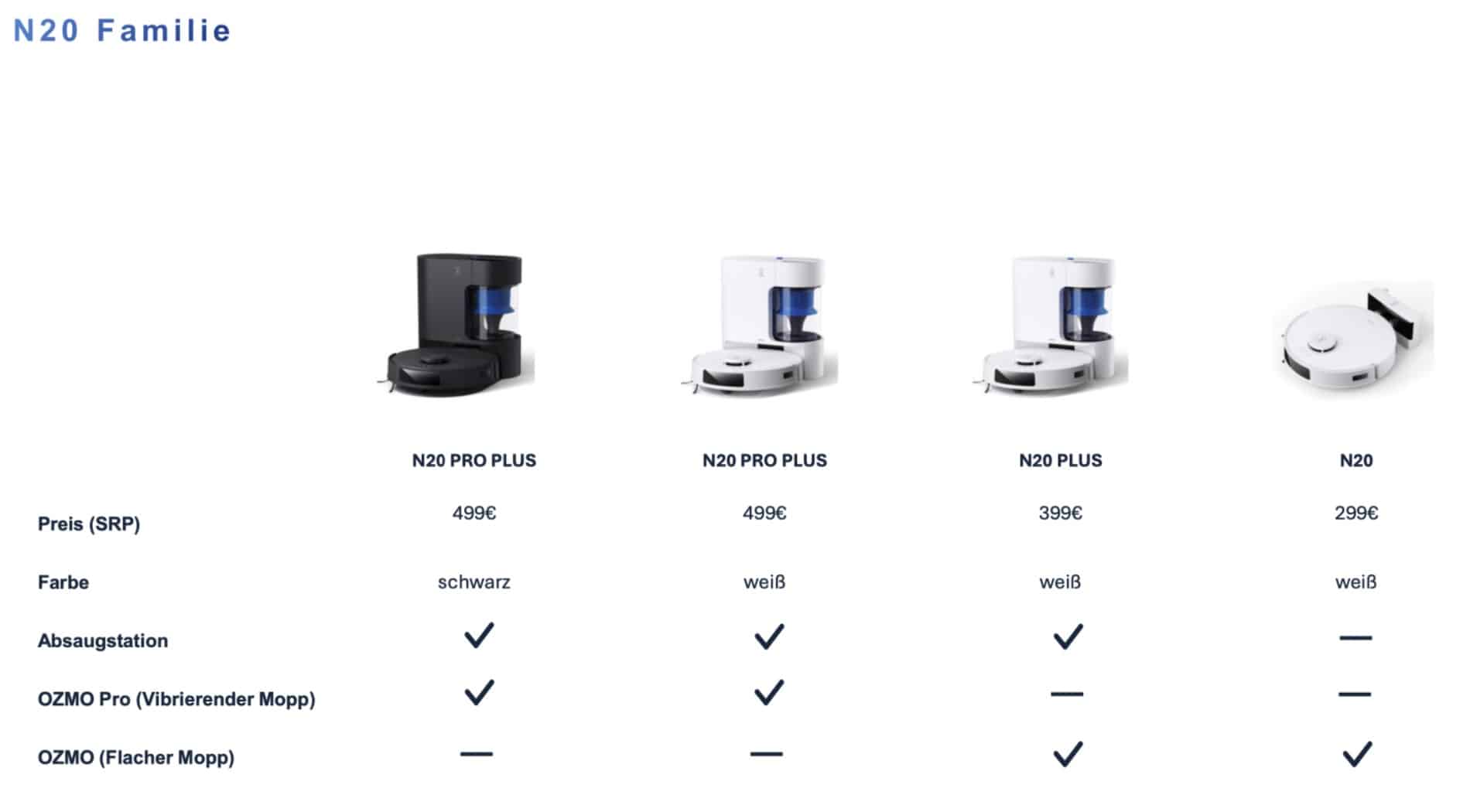 Mit einer etwas geringeren Saugleistung, der Hersteller spricht hier von 8000 Pascal, geht die neue N20-Serie in den Handel, die zudem über das OZMO-Wischsystem verfügt – jedoch nur beim N20 und beim N20 Plus. Ab dem N20 Pro verbaut der Hersteller die ECOVACS PureCyclone-Technologie, die durch einen zweistufigen Trennprozess bis zu 95 Prozent des Staubs aus der Luft filtern soll. Dadurch soll die Saugleistung auch nach vielen Anwendungen konstant bleiben und die Lebensdauer des Motors und des Filters verlängert werden.