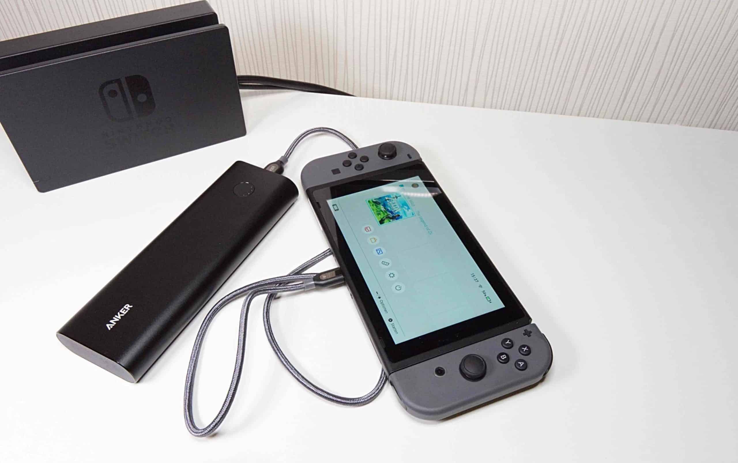 Unterwegs steht der Anker PowerCore+ mit seinen gigantischen 20.100 mAh an Akkukapazität zum Nachladen zur Verfügung. Dieser kann iPhone/iPad und Nintendo Switch zeitgleich aufladen, denn dafür beherbergt er zwei USB-A-Buchsen. Wer mit dem Anker-Akku nur die Switch aufladen möchte, der sollte wissen, dass man die Switch mit dieser Kapazität ganze vier mal aufgeladen bekommt und ein Zusatzakku zum korrekten Laden 12V mit 3A ausgeben muss – das beherrscht der PowerCore+ dank USB-C alles.