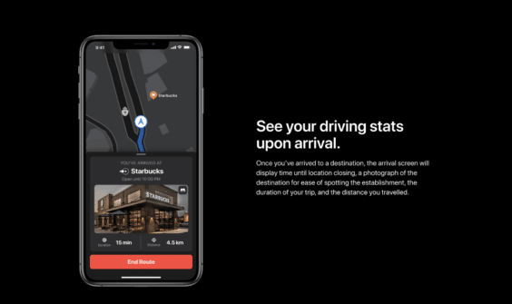 Unter den neuen Funktionen sind kleine überlappende Steuerungen für Musik und Siri während der Navigation. Ein neuer Restaurant-Filter und sogar die Möglichkeit, Tische dort zu reservieren oder für Filme Kinokarten zu kaufen, erhalten ebenso Einzug. Im neuen Ich-Tab kann man Punkte sammeln, indem man Bewertungen für alle möglichen Orte abgibt.