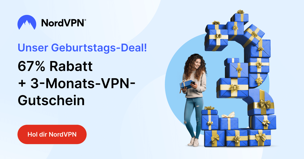 -> Geburtstags-Deal von NordVPN: 67 % Rabatt + 3-Monats-VPN-Gutschein einheimsen