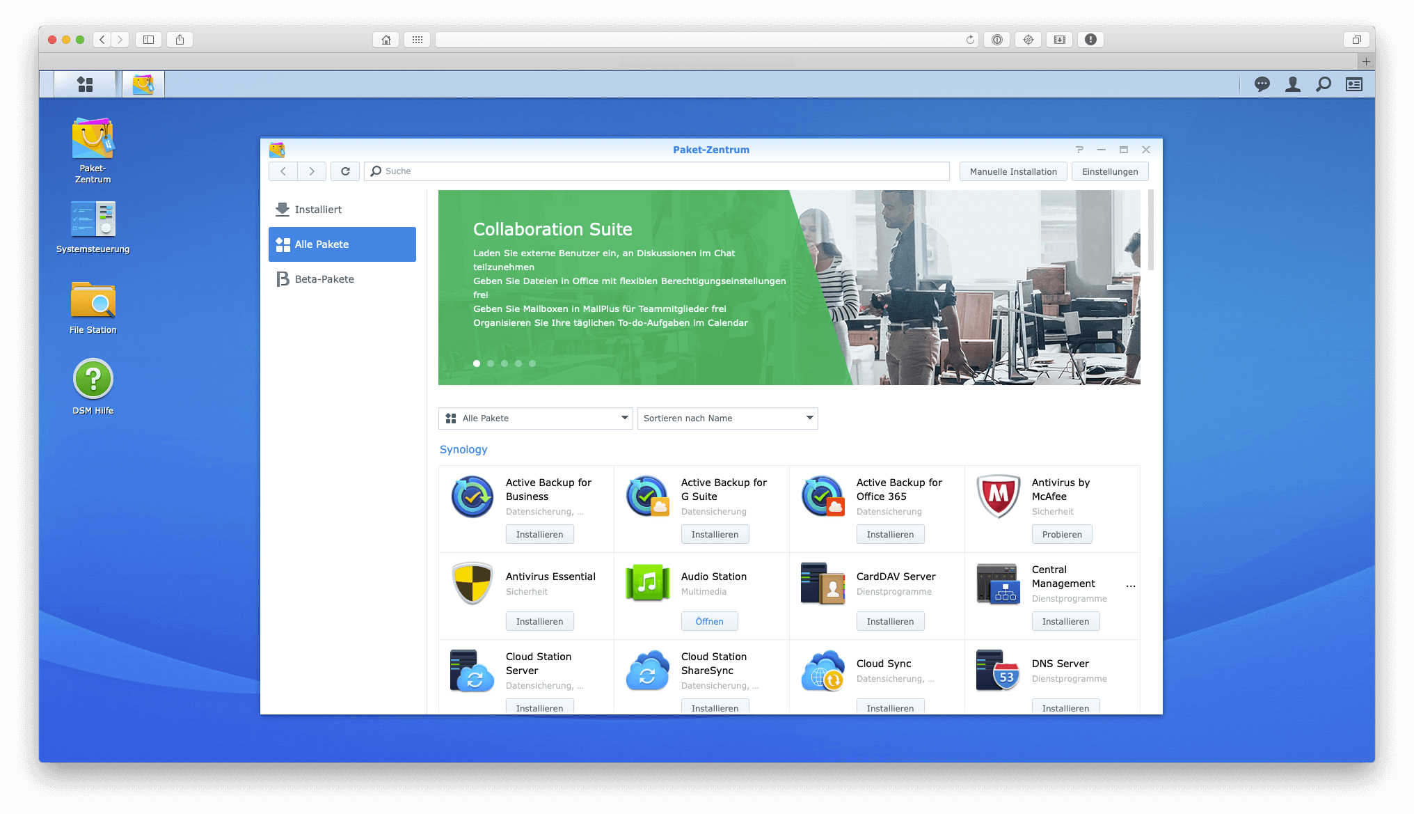 Im Folgenden zeige ich Euch die wichtigsten Tools, um das gemeinsame Arbeiten so gut wie möglich auf dem NAS abbilden zu können. Das Betreiben eines Mailservers durch MailPlus spare ich bewusst aus, da das Einrichten und Betreiben mehr Ahnung und einiges an Prämissen (z. B. statische externe IP-Adresse, DNS, Portfreigaben) voraussetzt. Ebenfalls lass ich den Synology-Anwendungsdienst weg, da er hauptsächlich für Admins interessant ist, die sich tiefer mit dem System auseinandersetzen.