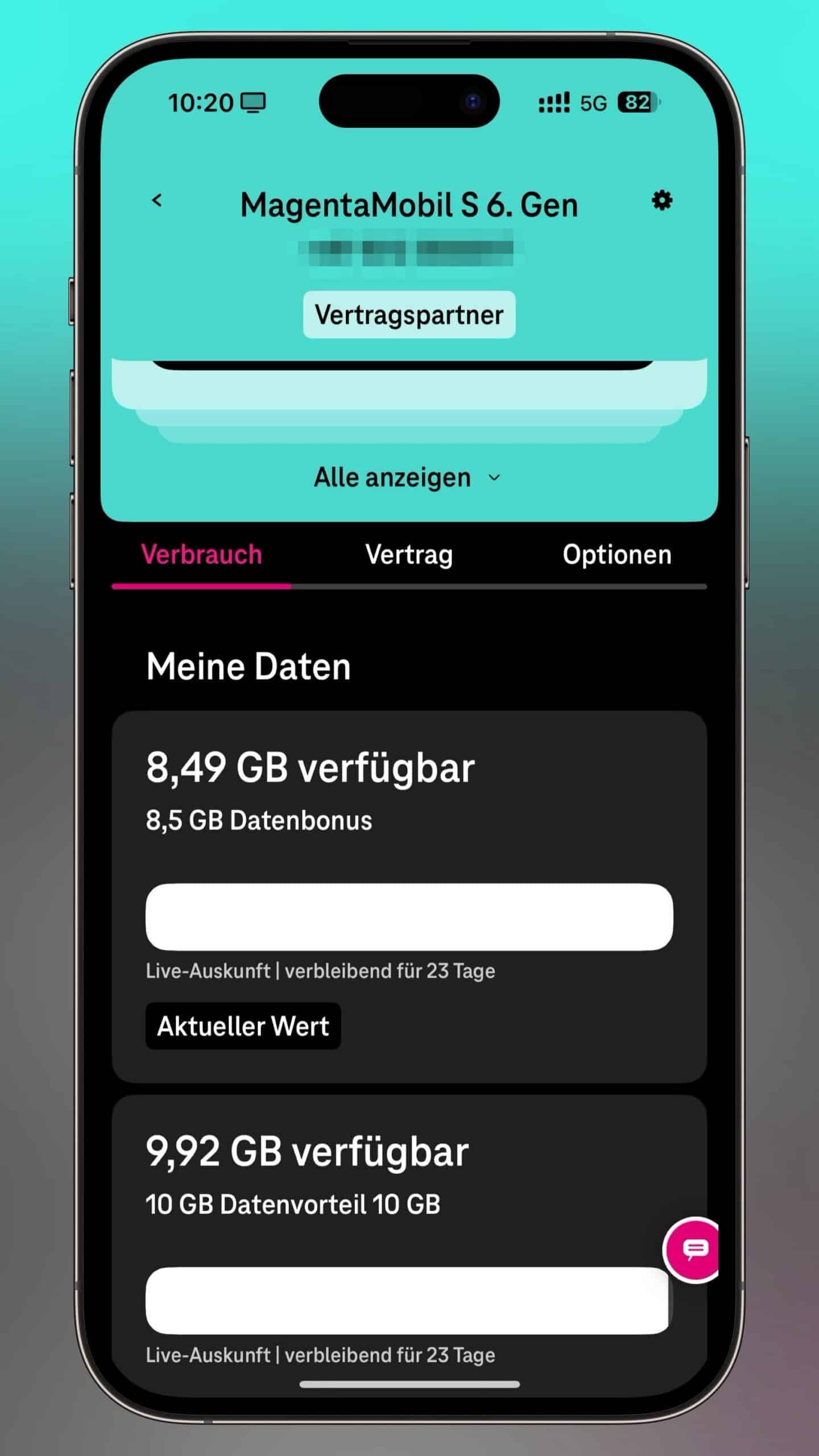 Die Trennung ist sicherlich hilfreich, wenn man mehrere Produkte von der Telekom bezieht. Gut gefällt uns, dass mit einem Tippen auf die Mobilfunkkarte die relevanten Daten wie Verbrauch, Vertrag und Optionen nun übersichtlicher aufgeführt sind. Dennoch verschwendet man zum aktuellen Zeitpunkt unwahrscheinlich viel Platz durch viel Leerraum.